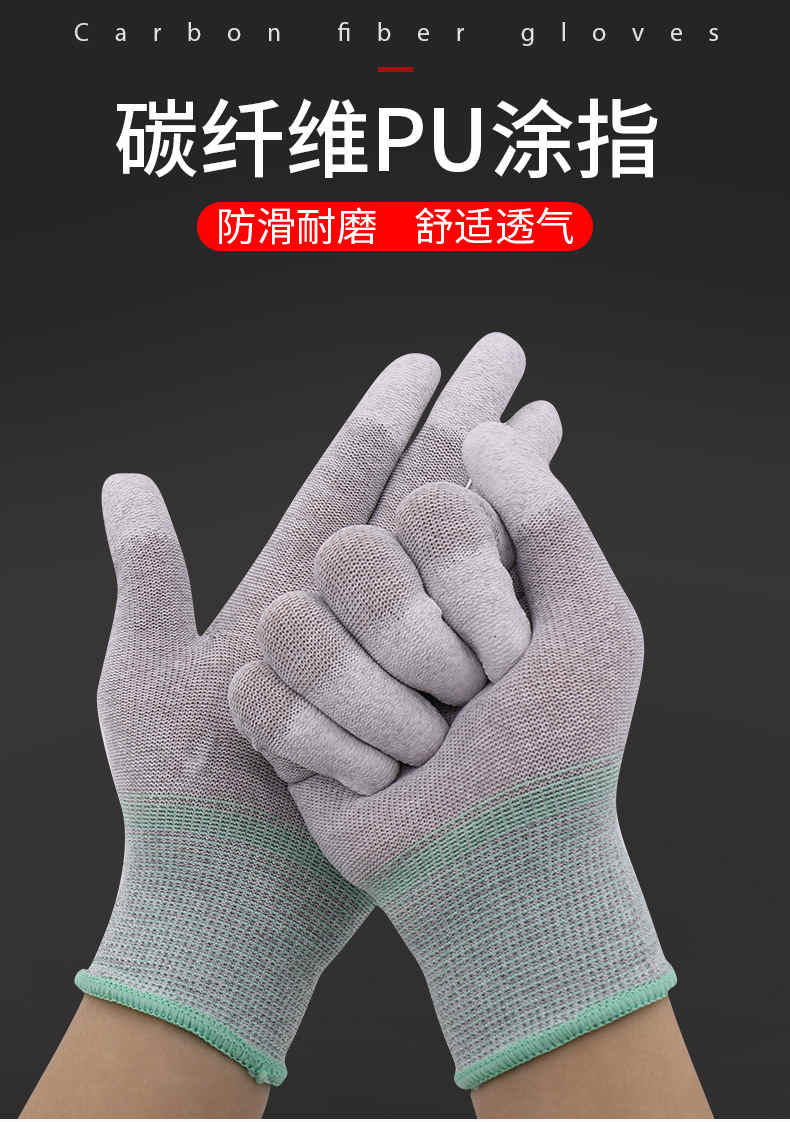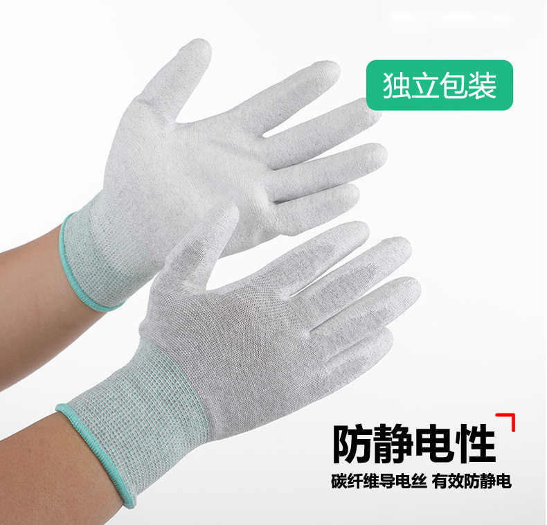 品名:碳纤维PU涂指防静电手套
